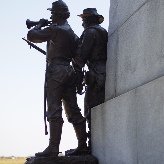 The day was a perfect Pennsylvania early fall day. It started crisp and cool and warmed nicely as the day progressed. The sky was cloudless and blue. I couldn't have asked for a more perfect day to spend in the Gettysburg Military Park. We came across the first shot marker by accident. While the marker is documented, its location is not. We were coming north up Knoxlyn after having gotten onto to it accidentally. My wife saw it an instant before I did. I drove east a bit on 30, then turned off to park and walk back to photograph the marker. It was probably the high point of my day.